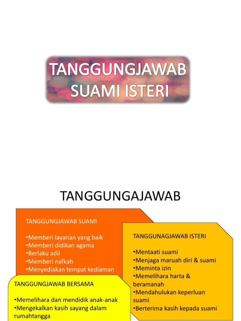 TANGGUNGJAWAB SUAMI ISTERI 2. Ini termasuk menjaga maruah diri sendiri suami dan keluarga. 2 Tanggungjawab isteri.